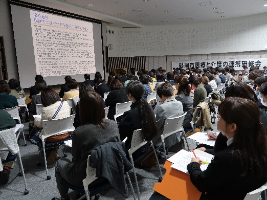 今回は、認知症看護認定看護師の富樫さんと渡部さんの2人を講師に迎え研修会を開催いたしました。テーマが「認知症の方の支援」ということで関心も高く193名の方にご参加いただきました。講義での事例を通したディスカッションでは自分の職種の視点と他職種の視点の違いを知ることができたとの意見も多く聞かれ、今回の研修会で得たものを今後の多職種連携に生かしていただければと思いました。また、アンケートでは9割の方が研修会に満足との回答を得ました。