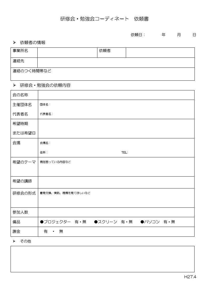 | 研修会・勉強会 コーディネート依頼書 |