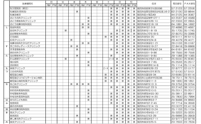 医療機関の休診日についてご案内いたします。(R6.10月更新) 【PDF版のダウンロードはこちら】